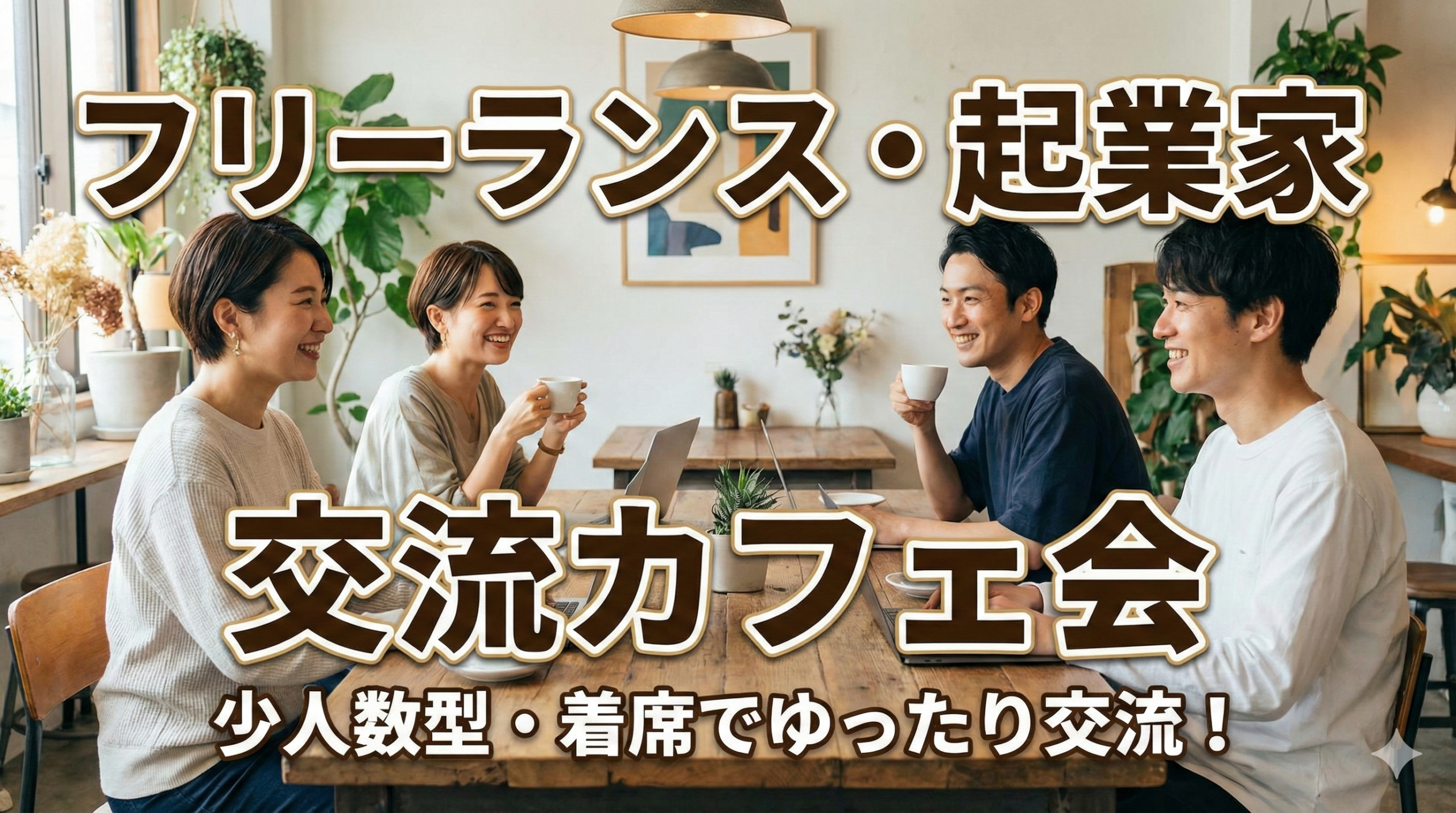 フリーランス・起業家交流カフェ会(少人数型)とは、フリーランス・起業家が集まって意見交換や情報交換するアットホームな交流会です。
