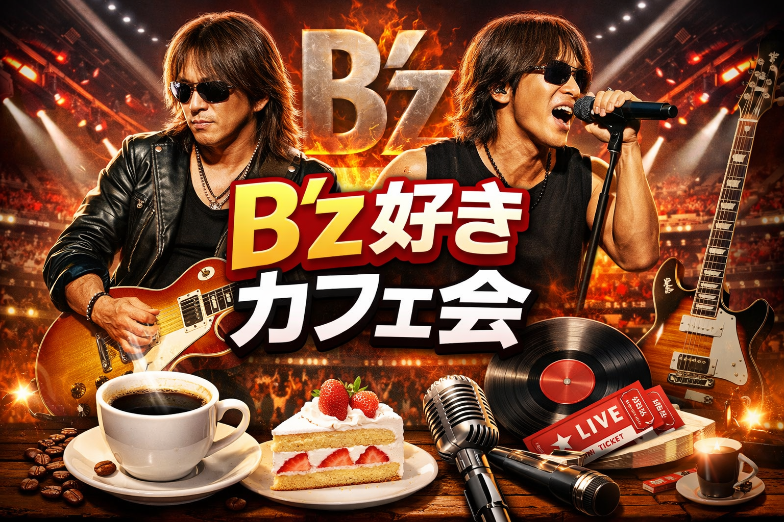 ライブの思い出、好きなアルバムや曲、推しポイントなど、B’zの魅力をたっぷり語れるカフェ会です!