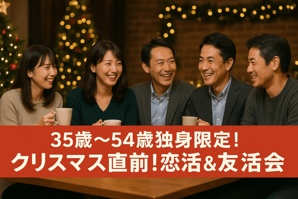 12/23(火)19時~「クリスマス直前!恋活&友活カフェ会(35歳~54歳独身限定!)」@小倉